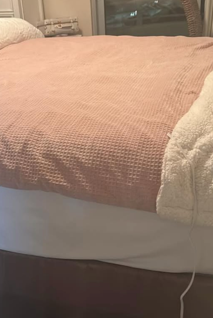 The fitted skirt keeps the blanket in place all night. It won’t shift or bunch, so the heat stays evenly distributed.