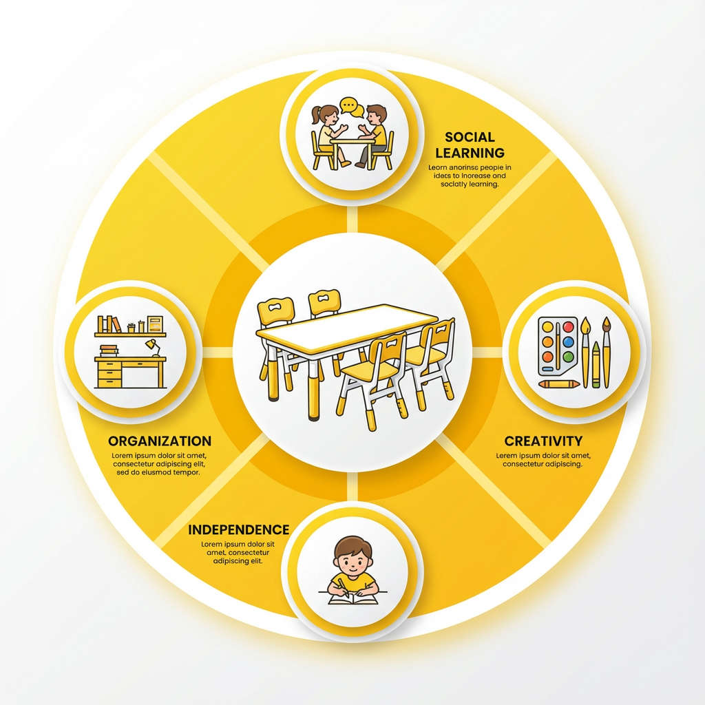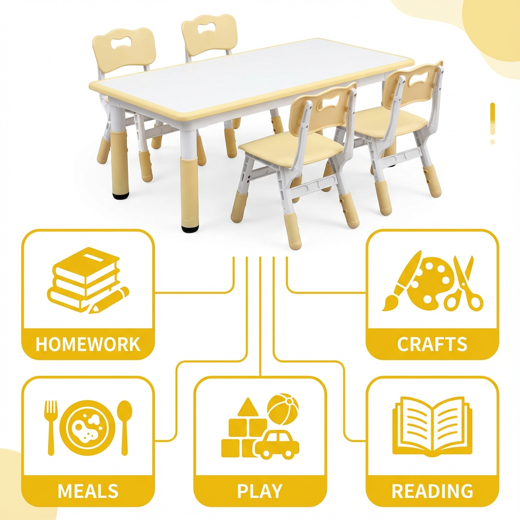 A well-designed table set helps children stay focused, learn cooperatively, and build independence. With a space sized just for them, kids gain the freedom to draw, craft, build, eat, read, and explore—all while strengthening fine-motor and social skills.