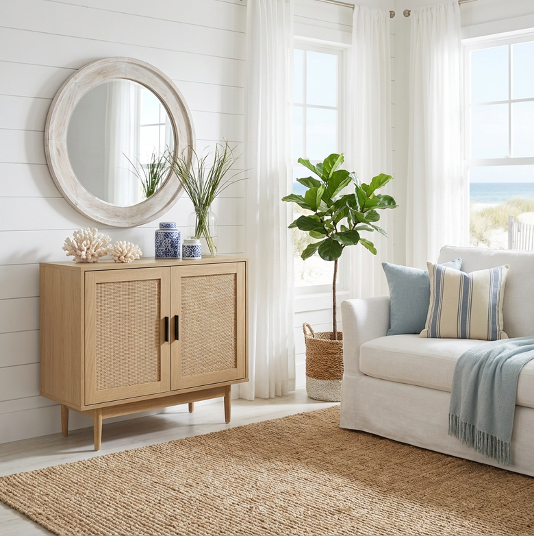 Give your home an instant refresh with natural texture and warm, modern design. This cabinet blends seamlessly with boho, coastal, scandi, and minimalist décor, adding charm without effort.