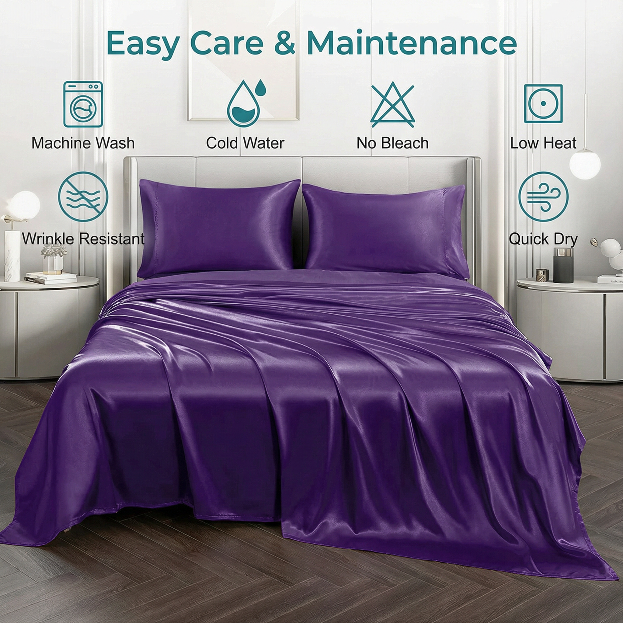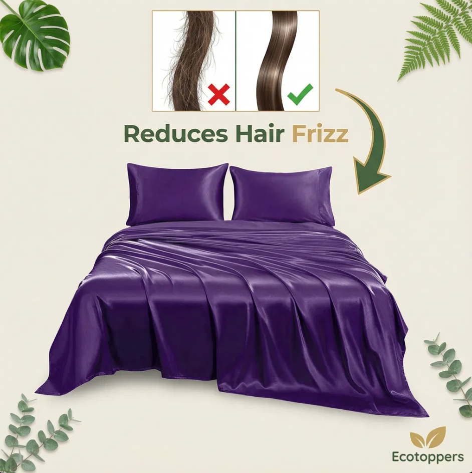 Transform your nights with Silk Satin Sheet Sets. Designed to reduce friction and enhance comfort, they help protect your hair and skin while delivering smooth, breathable luxury — so you wake up refreshed, comfortable, and ready for the day.