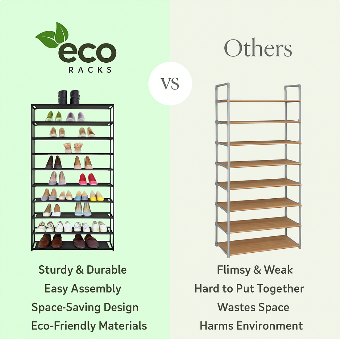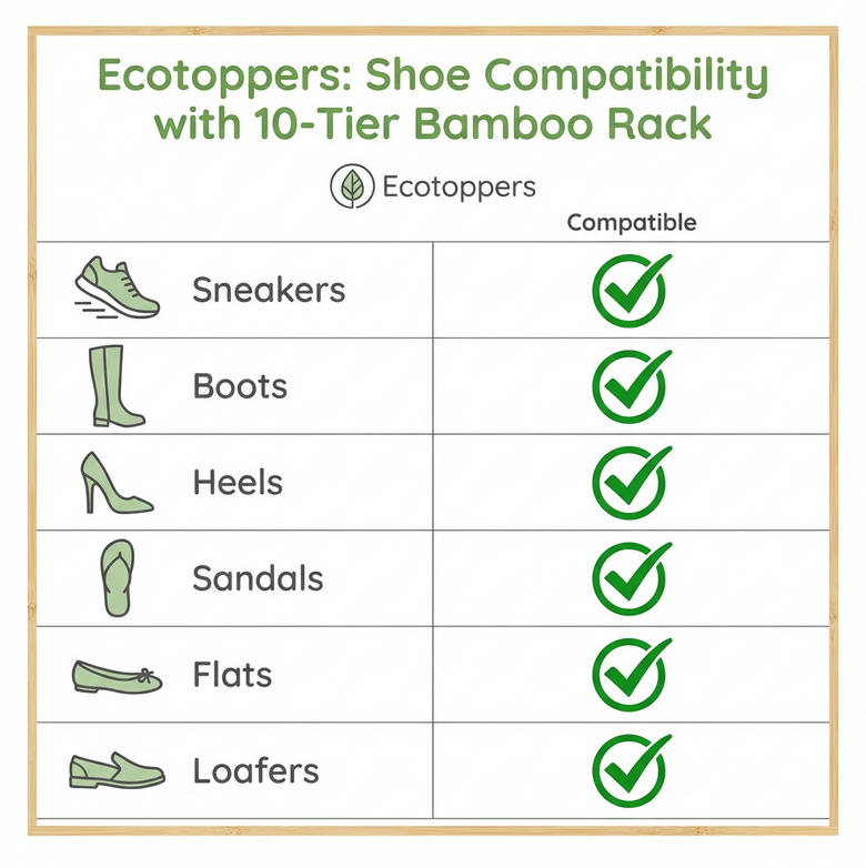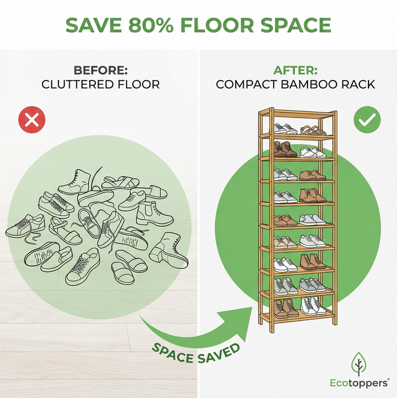 The Eco Toppers™ 10-Tier Shoe Rack delivers immediate visual calm, enhanced space efficiency, and consistent order—no matter how many pairs your household owns. By keeping every shoe upright, aired, and accessible, it preserves shoe quality while simplifying your daily rhythm.