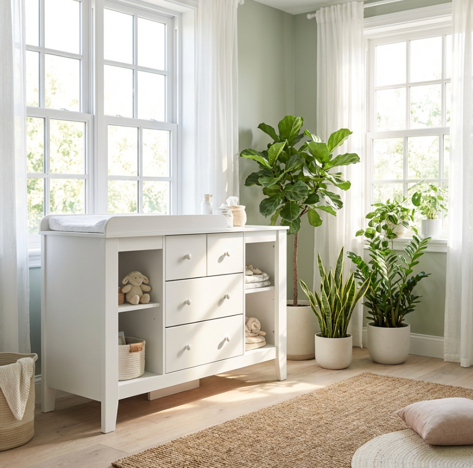 Do you feel overwhelmed during nappy changes, juggling wipes, nappies, creams and clothes with one hand while keeping your baby safe with the other? You’re not alone. With newborns needing up to 12 changes a day, things can get messy fast—our Baby Change Table is designed to restore calm, safety and order.