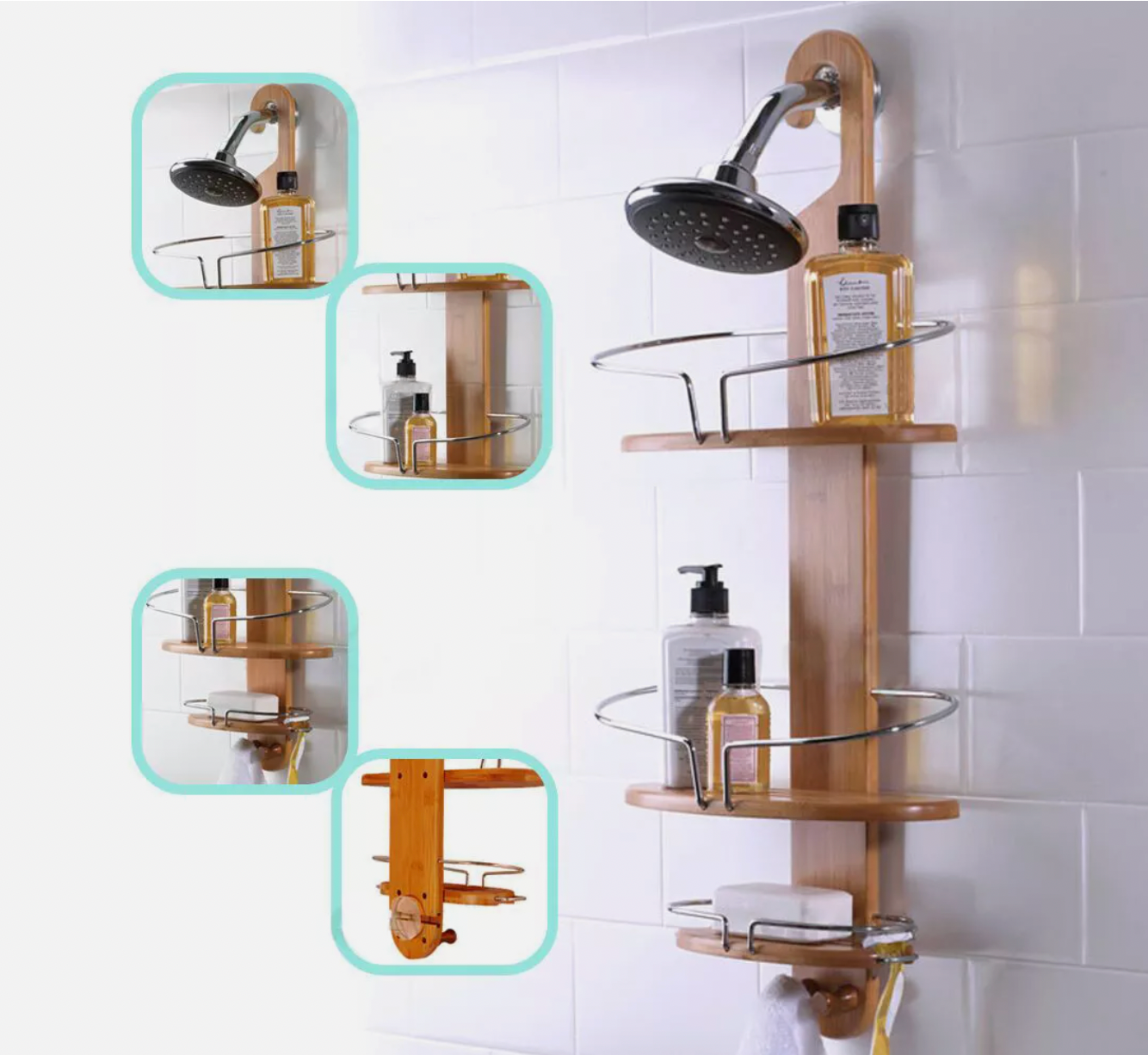 With three roomy tiers and handy hooks, there’s space for every shower essential. Its sleek bamboo finish brings a spa-like calm to your daily routine.