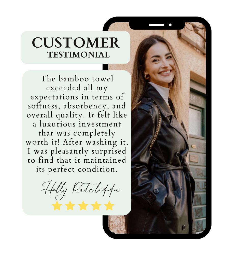 Our Bamboo towels are crafted with a dense 650 GSM (grams per square meter) fabric, providing a plush and luxurious feel without being overly heavy. This balance ensures exceptional absorbency and quick drying, enhancing your comfort.