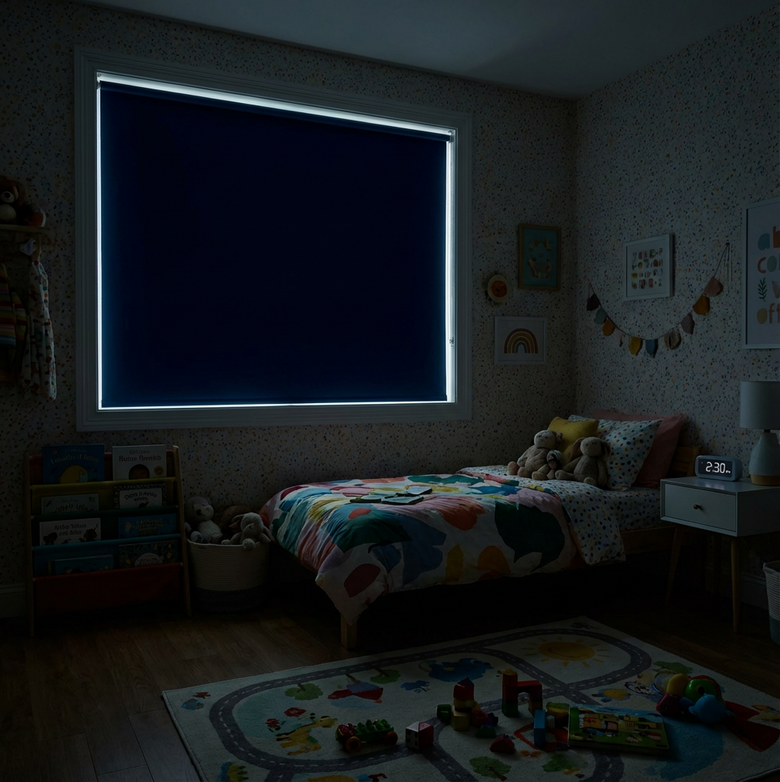 Yes. Our blackout blind uses a dual-layer system — a high-density black fabric layer to absorb light and a reflective silver PU layer to stop sunlight at the source. Together, they create full darkness, even with strong morning sun, street lights, or skylights.