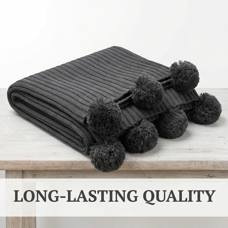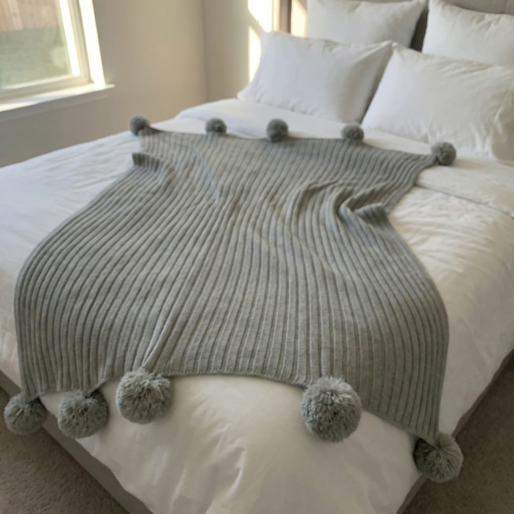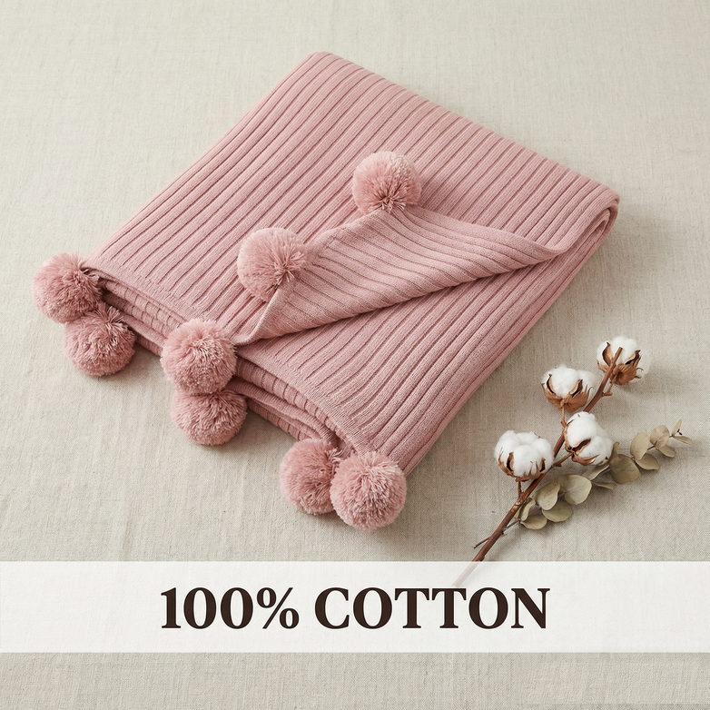 Our Cotton PomPom Blanket combines a breathable ribbed-knit weave with oversized fluffy pompom edges for unmatched softness and style. Backed by our 90-night risk-free trial, better comfort is guaranteed.