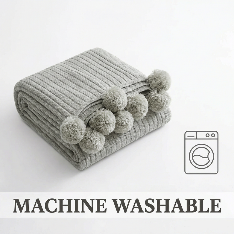 Just drape, style, and enjoy. Our pompom blanket is fully machine washable and built to stay soft, fresh, and beautiful season after season — it's that easy.