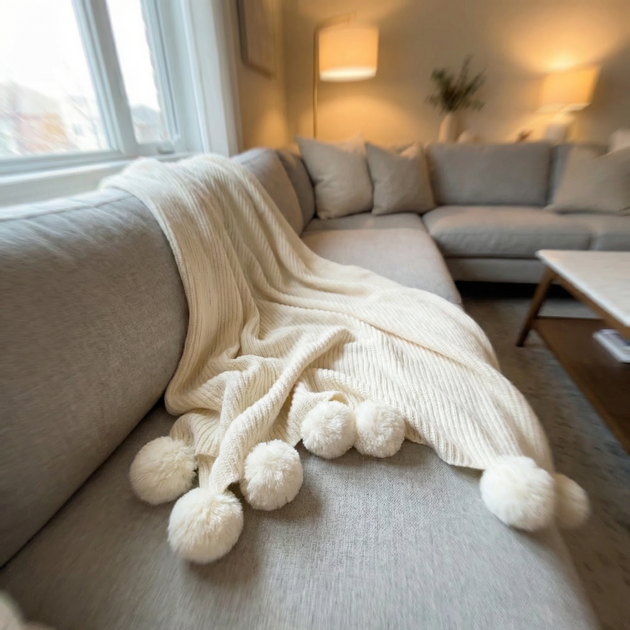 Transform your living space! Our Cotton PomPom Knitted Throw Blanket turns any sofa or bed into a cosy retreat. Wrap yourself in breathable 100% cotton softness, add instant style to any room, and enjoy warmth without the weight — 90-day risk-free trial + free shipping. Shop now and elevate your comfort!