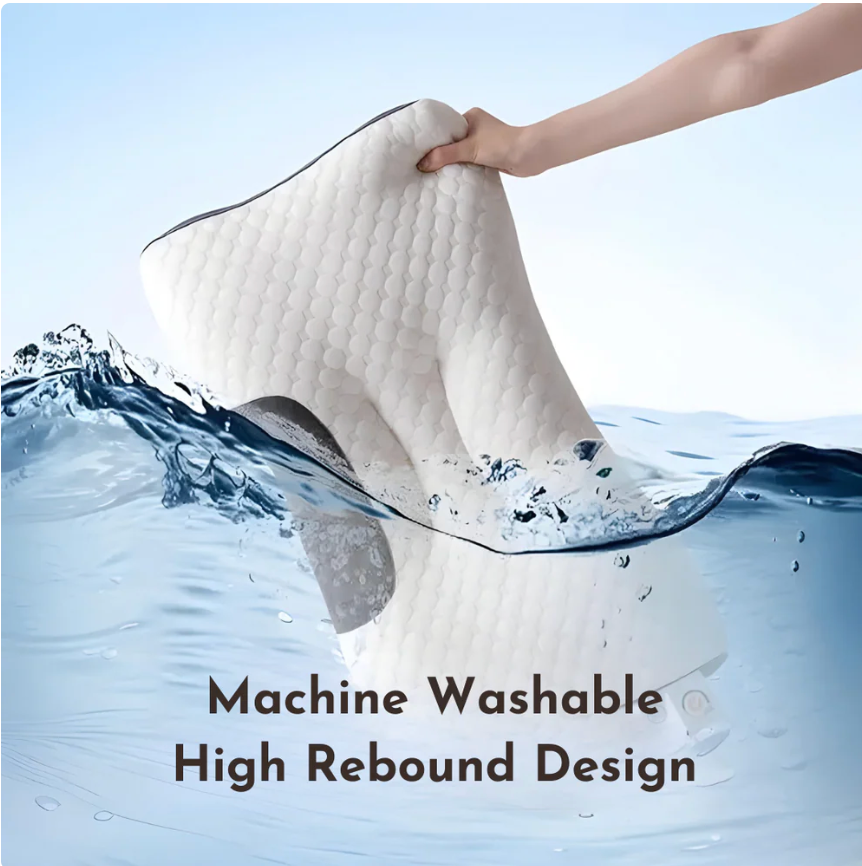 Simply place our ergonomic pillow on your bed, adjust it to your preferred position, and enjoy a restful night's sleep. Our pillow is easily machine washable, ensuring a clean and healthy sleeping environment.