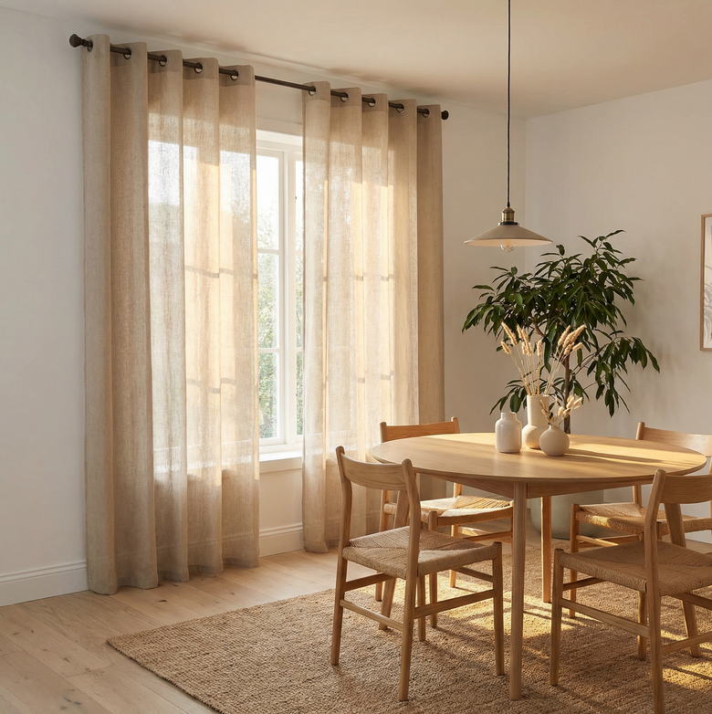 Transform your space with our Premium Linen Semi-Sheer Curtains. Naturally breathable and beautifully textured, they soften harsh sunlight while maintaining daytime privacy — creating a calm, airy atmosphere that makes every room feel brighter, warmer, and more inviting.
