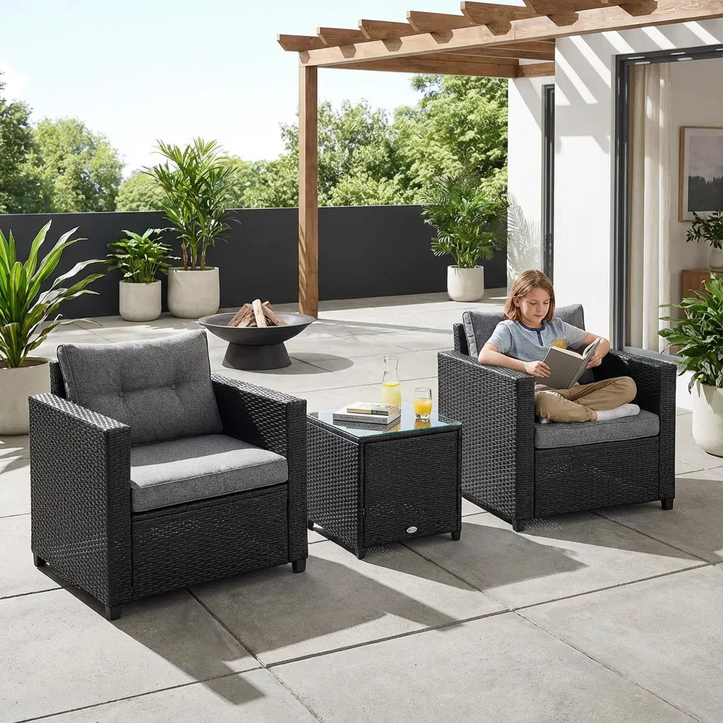 Upgrade your outdoor living! Our Rattan Lounge Set turns any patio, balcony or deck into a stylish relaxation zone. Enjoy premium PE wicker, plush comfort cushions and weather-resistant durability — 90-day risk-free trial + free shipping. Shop now and elevate your outdoor lifestyle!
