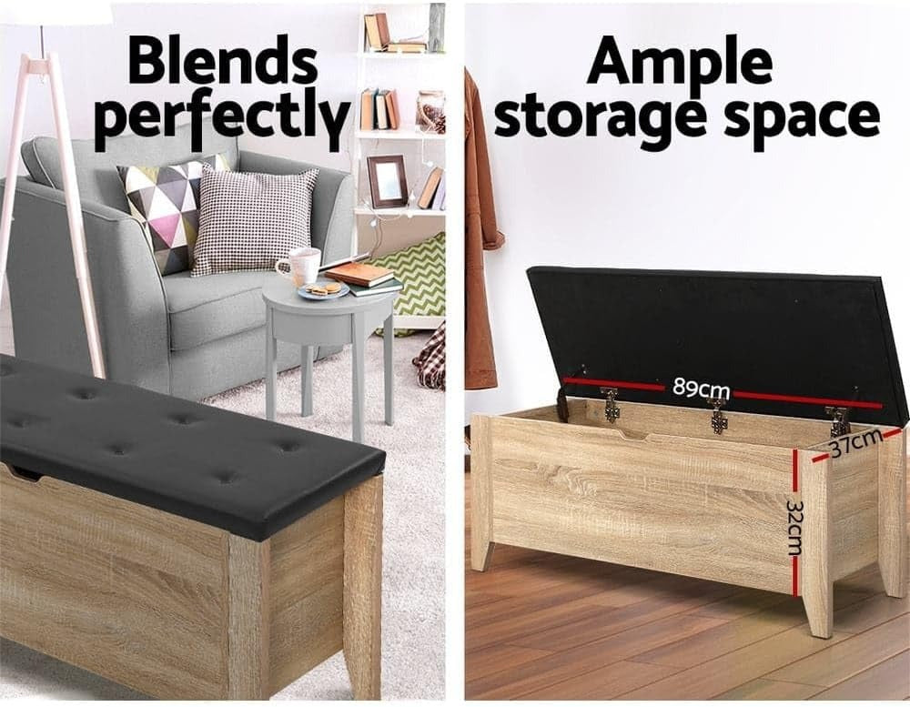 Plenty. The hidden compartment under the lid is spacious enough for blankets, pillows, bedding, towels, toys, books, or seasonal items — making it far more practical than open shelves or decorative baskets. This capacity helps you “hide clutter” and reclaim living space efficiently.
